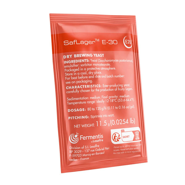 Die SafLager™ E-30 Hefe von Fermentis ist ein ausgewählter Lagerstamm, der fruchtige Ester – insbesondere Bananennoten – betont. Sie eignet sich ideal für aromatische, fruchtige Lagerbiere oder innovative Stile, bei denen ein stärker fruchtbetonter Charakter gewünscht wird als bei klassischen neutralen Lagerbieren.