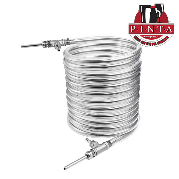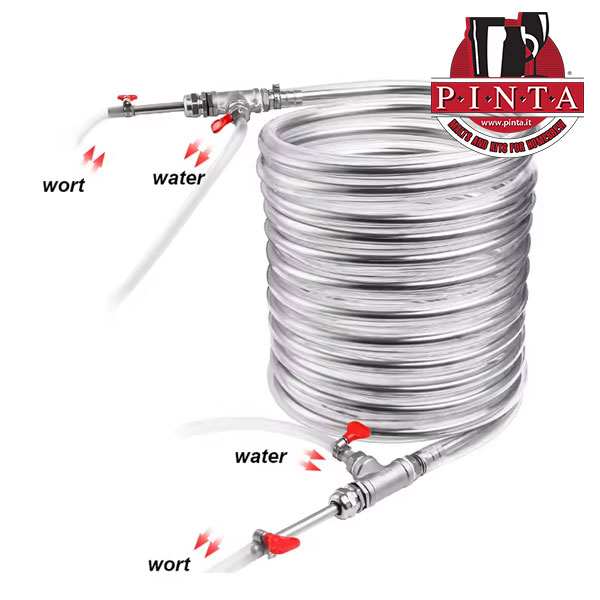La serpentina a controflusso in acciaio inox è un accessorio professionale per la birrificazione casalinga, progettato per garantire un raffreddamento rapido ed efficiente del mosto.